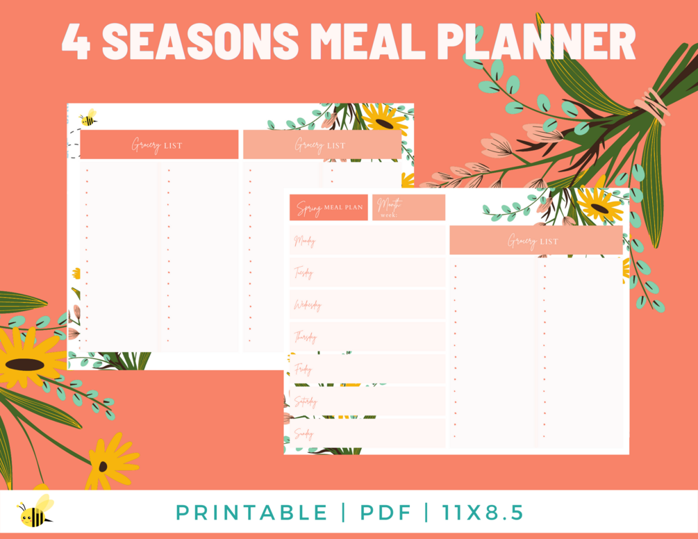 Need help with planning your meals in order to save money, reduce food waste, eat healthier or lose weight? The "4 Seasons: Spring Weekly Meal Planner with Grocery List" will help you stay motivated and organised all year long!