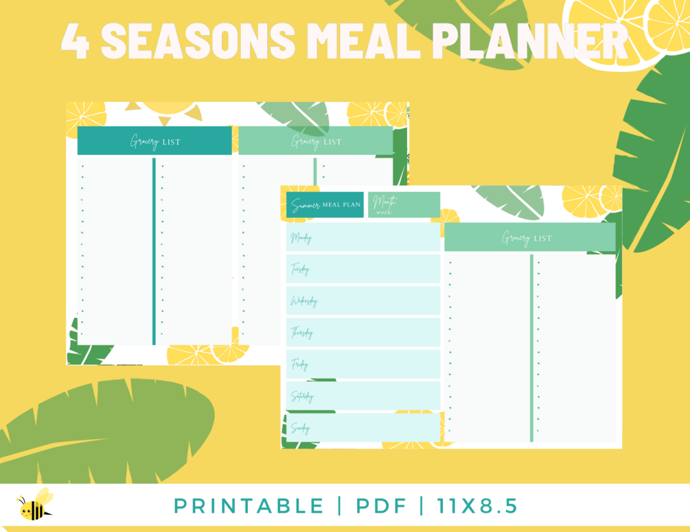 Need help with planning your meals in order to save money, reduce food waste, eat healthier or lose weight? The "4 Seasons: Summer Weekly Meal Planner with Grocery List" will help you stay motivated and organised all year long!